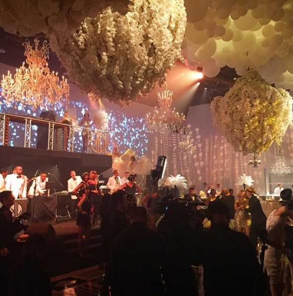 Após uma receção aos convidados com champanhe, o evento contou com uma atuação do genro da socialite, Kanye West.