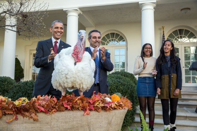 O presidente dos Estados Unidos manteve-se fiel à tradição e esta quarta-feira, véspera do dia de Ação de Graças, perdoou um peru. A cerimónia decorreu nos jardins da Casa Branca e contou com a presença das duas filhas de Obama, Malia, de 17 anos, e Sasha, de 14.