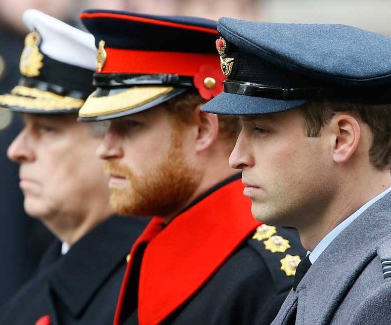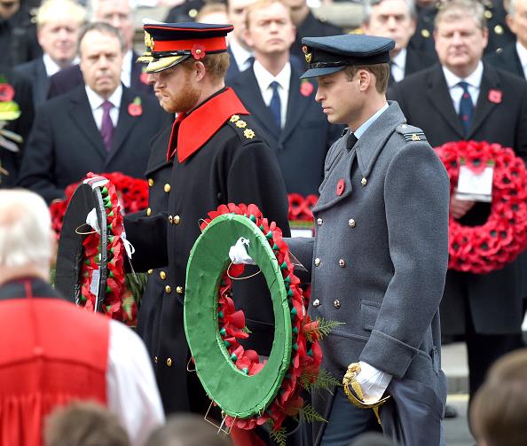 Harry, que não esteve no Festival Remembrance, ontem à noite, também participou nesta homenagem, ao lado do irmão, William.