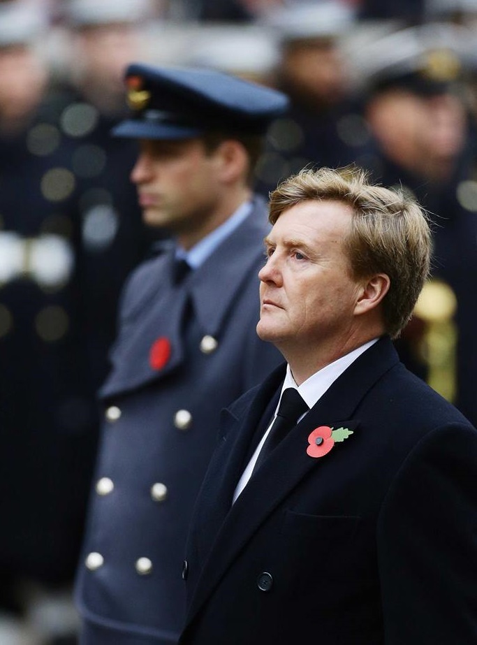Guilherme e Maxima viajaram para Londres para assinalarem o Remembrance Day, que presta homenagem a todos aqueles que morreram em conflitos armados, este domingo, dia 8. Os reis holandeses juntaram-se a vários membros da família real britânica.
