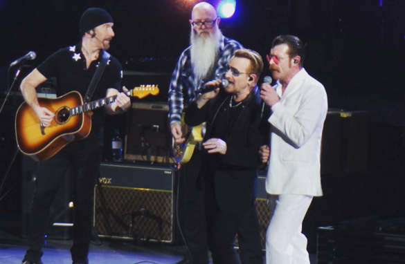 “Roubaram-lhes o seu palco há três semanas e nós gostaríamos de oferecer-lhes o nosso esta noite”, disse o vocalista dos U2, Bono, abrançando-se a Jesse Hughes antes de ambos interpretarem a música de Patti Smith.