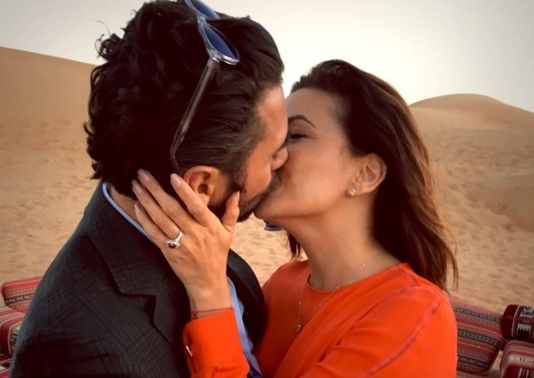 “Ummmm então isto vai acontecer… noiva”, escreveu na legenda da foto, que foi captada no deserto, durante a passagem do casal pelo Dubai, onde marcaram presença na Global Gift Gala.