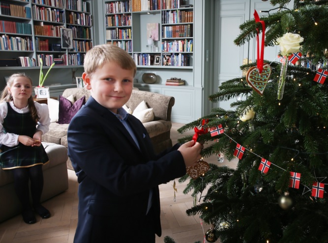 Nas imagens, que foram captadas no palácio Skaugum, a residência oficial de Haakon, vê-se a família reunida em torno da árvore de Natal e a enfeitá-la com biscoitos de gengibre, uma tradição norueguesa.