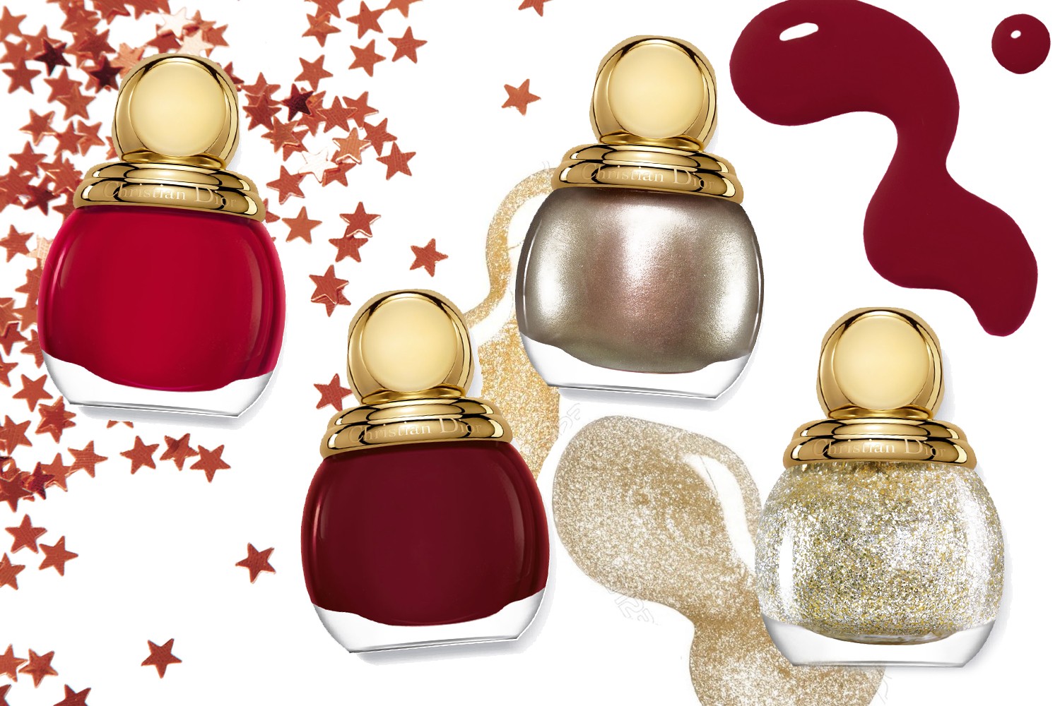 O quarteto da coleção State of Gold, da Dior: Passion, Mystère, Gris-Or e State of Gold (99 dólares)