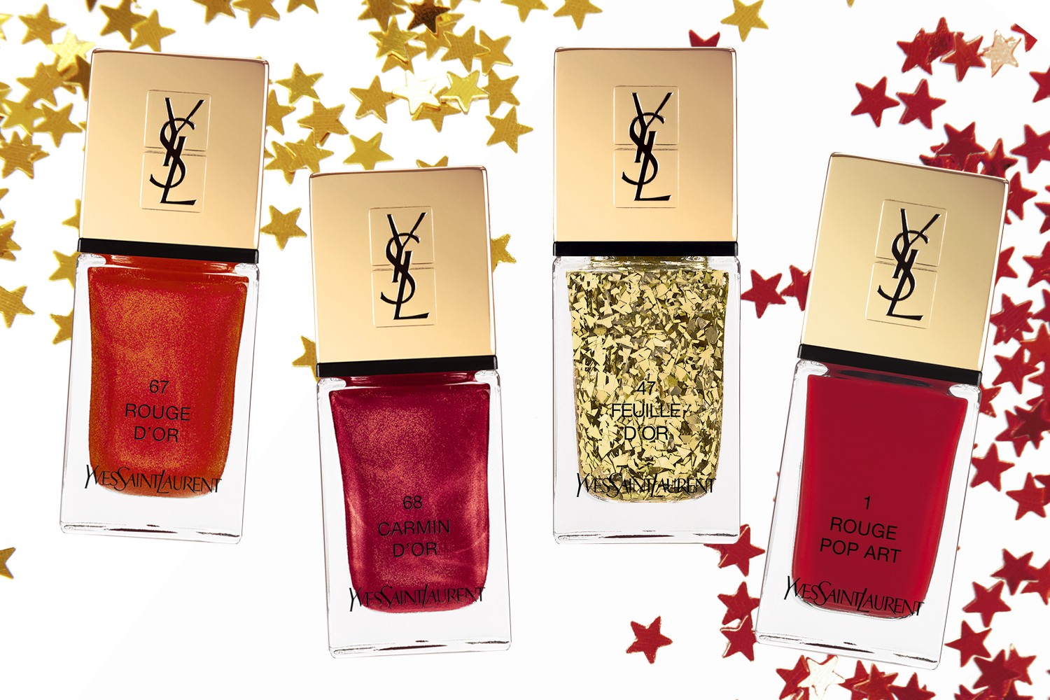 Rouge d’Or, Carmin d’Or, Feuille d’Or e Rouge Pop Art, Yves Saint Laurent (23 dólares)
