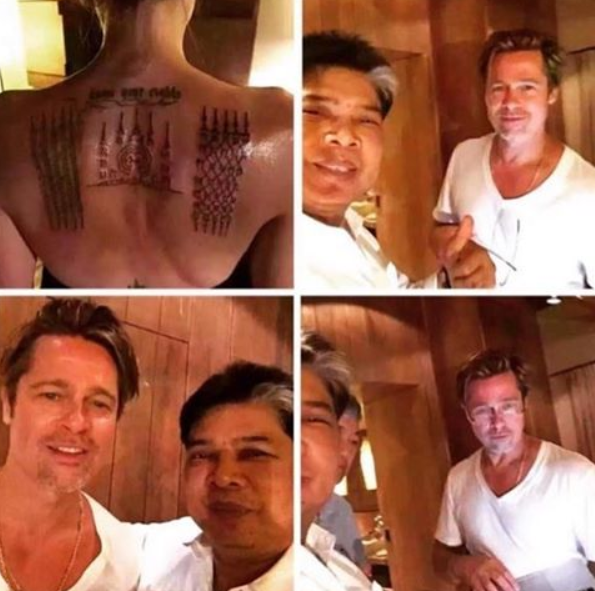 O próprio tatuador de Jolie, Ajann Noo, cujo estúdio fica no Camboja, divulgou fotos nas redes sociais, bem como do encontro com Brad Pitt, que acompanhou a mulher.