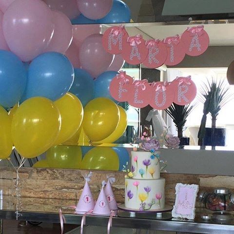A estrela da Globo decorou o espaço a rigor e contou com a ajuda de algumas empresas de organização de eventos. O bolo era branco com flores pintadas e a aniversariante até teve direito a chapéus com o número 1.