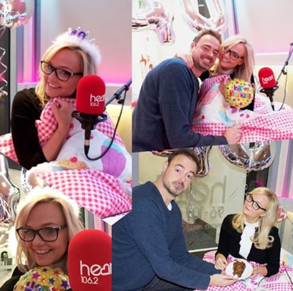 A baby spice, a mais jovem da girls band de sucesso dos anos 90, começou o dia como de costume, a trabalhar no seu programa na rádio Heart FM. Porém, foi surpreendida pelos colegas. No estúdio foi instalada uma cama decorada em tons de rosa, para que pudesse fazer a emissão. Não faltou, claro, o bolo, confetis e chapéus de festa.