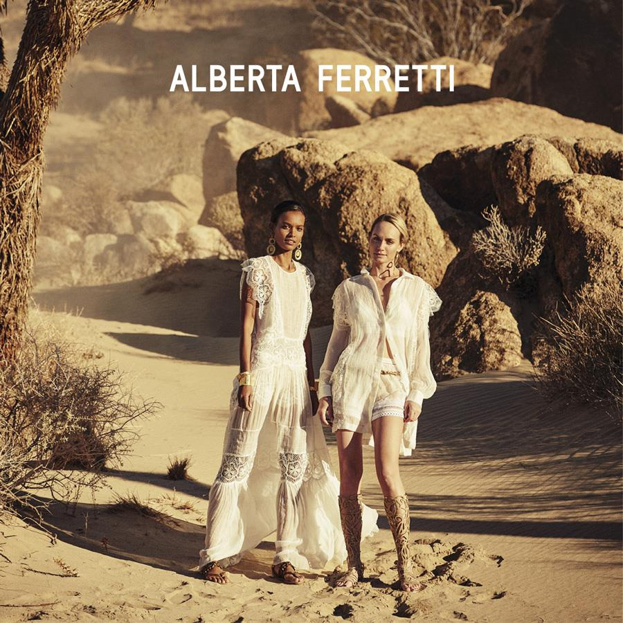 Liya Kebede e Amber Valletta brilham na campanha da coleção primavera/verão 2016 de Alberta Ferretti. As duas modelos foram fotografadas no deserto pelo conceituado Peter Lindbergh.