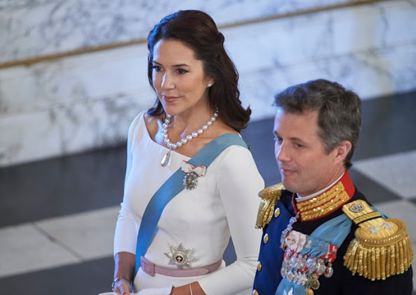 Mary, que é considerada uma das mais elegantes princesas europeias, escolheu para a ocasião um vestido branco com um cinto rosa, que evidenciava a sua excelente forma física. A princesa, ao lado do marido e da rainha, Margarida, esteve sempre sorridente e bem-disposta, mostrando-se relaxada, provavelmente por acabou de gozar uns dias de descanso.