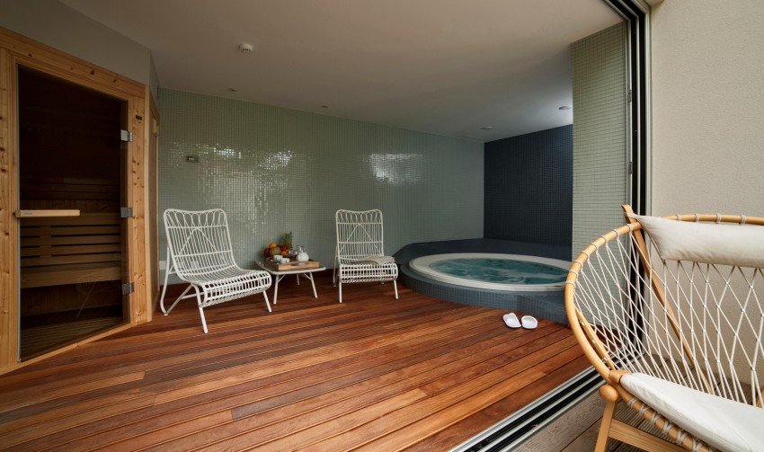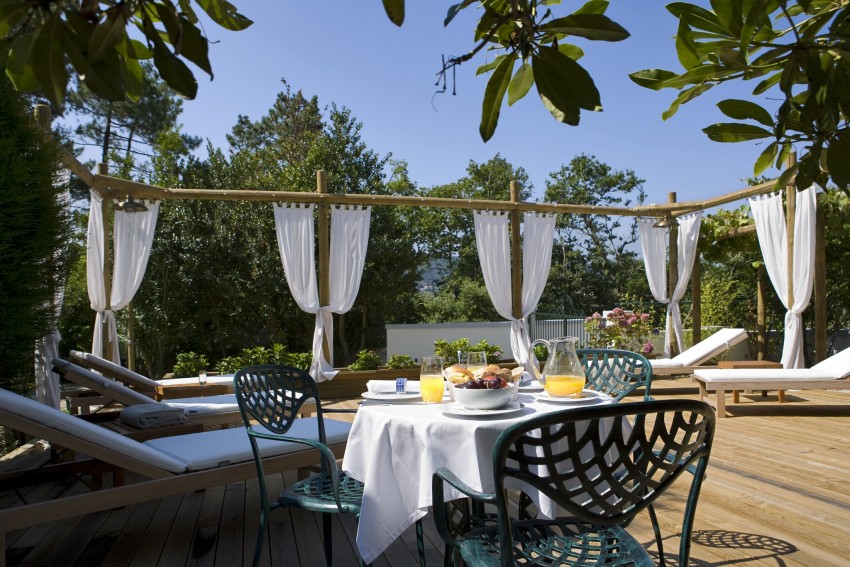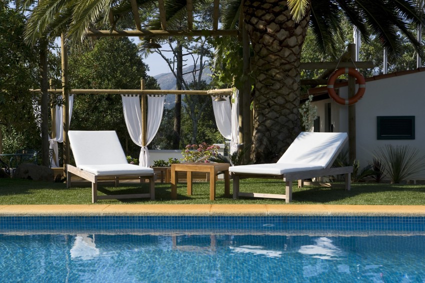 Para além da piscina exterior e do verdejante e sedutor jardim, há ainda espaços de relax com espreguiçadeiras, mesas rústicas e até grelhadores, permitindo usufruir ao máximo dos dias e noites mais quentes. E o jardim transforma-se em sala de convívio, em bar, em palco de churrascos ou sunset parties.
