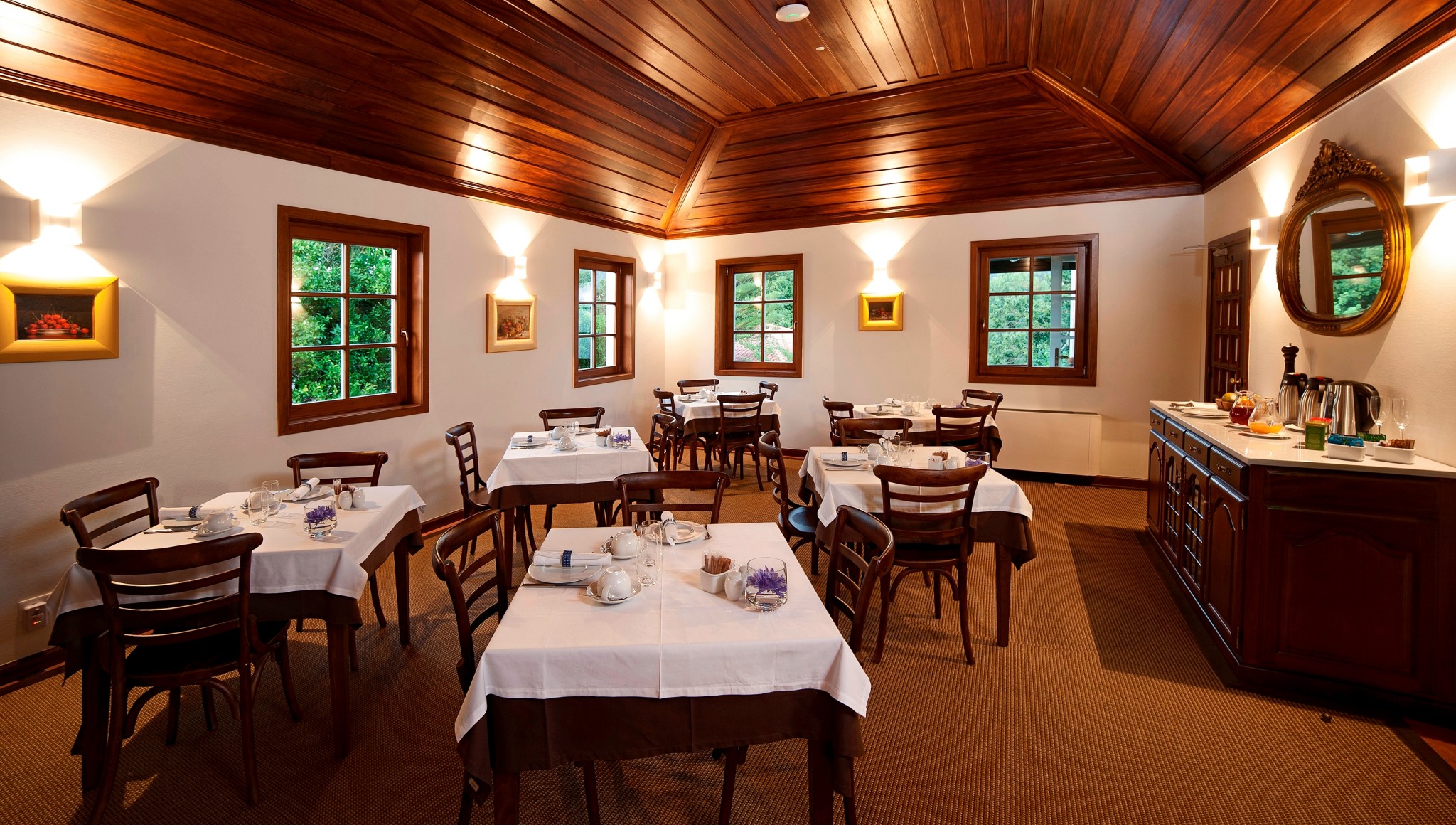 No salão – que é também sala de jantar ou restaurante -, é também servido o Chá das 5, faz-se tertúlias, jantares temáticos, noites de fado e festas várias, para os hóspedes e para todos os que o desejarem.