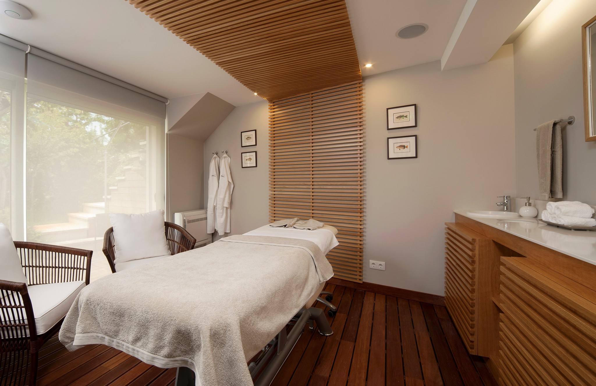 Para melhor colher da natureza uma carga de vivacidade e força, surgiu na quinta o Jardim das Águas, composto por um solário aberto, sauna, jacuzzi e um espaço onde é possível desfrutar de massagens e tratamentos de beleza e saúde, proporcionando o fortalecimento do organismo e bem-estar. Pedras e aromas complementam-se para garantir momentos únicos de puro relaxamento. Os óleos essenciais utilizados são extraídos de plantas, flores, raízes, folhas, sementes, ervas, madeiras e resinas, cada qual com singulares propriedades terapêuticas.