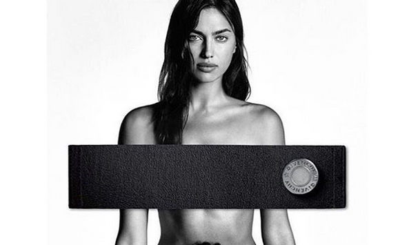 Irina Shayk partilhou nas redes sociais o vídeo da campanha, onde surge em topless, vestida apenas com uns jeans, e em poses sensuais com um modelo Luigi Diango.