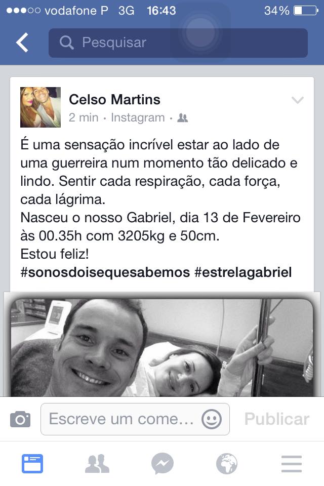Ana Rita Rocha e Celso Martins foram pais pela segunda vez. Gabriel nasceu este sábado, dia 13, às 00h35, com 3,205kg e 50cm.