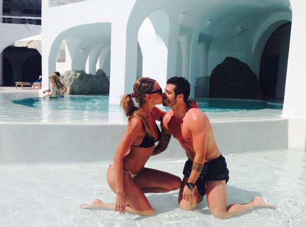 O jogador Ivan Rakitic publicou uma foto na qual surge a trocar um beijo apaixonado com a mulher, Raquel.