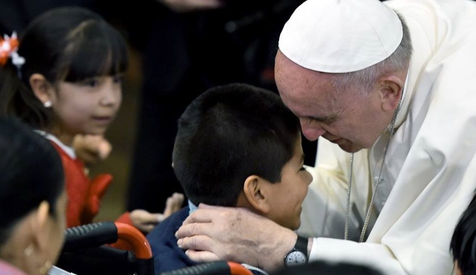 Durante a visita, o Papa não hesitou em dar um medicamento a uma criança e comoveu-se com a voz angelical de uma paciente, que cantou “Ave Maria”.