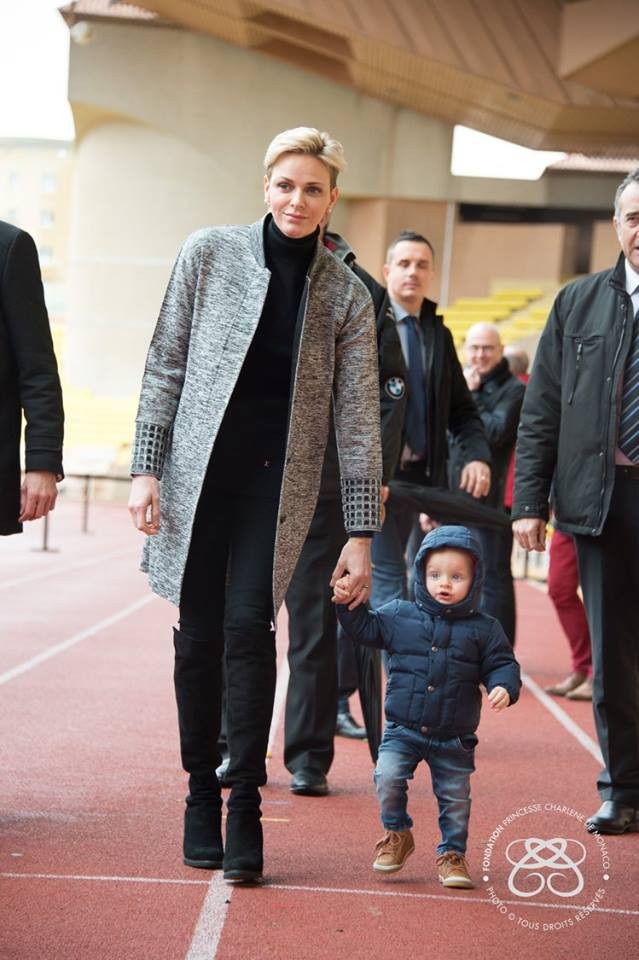 Sorridente, o menino entrou no recinto desportivo pelos seus próprios passos e de mão dada com a progenitora. Como seria de esperar, Jacques, que completou um ano no passado mês de dezembro, acabou por centrar atenções, já que não era visto em público desde o seu aniversário.
