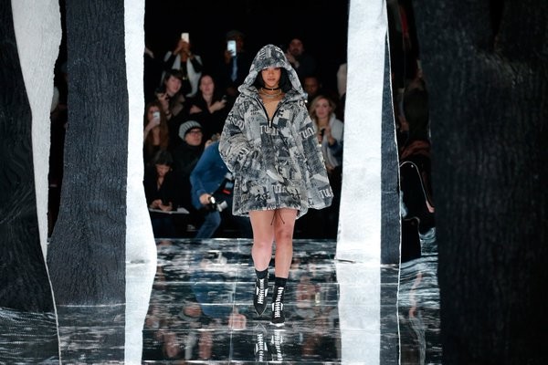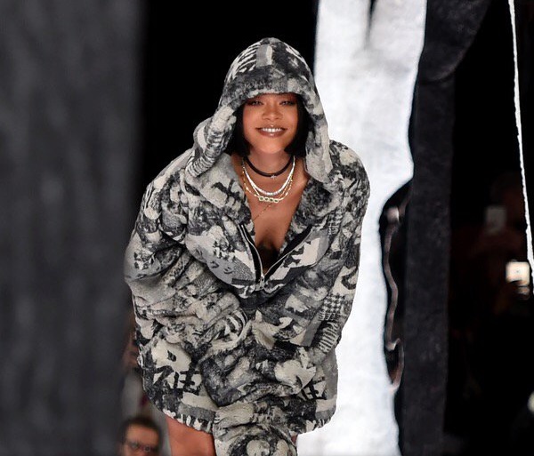 A cantora dos Barbados apresentou a sua coleção criada em parceria com a Puma e surpreendeu ao pisar a passerelle, em Nova Iorque, na sexta-feira. Rihanna desfilou apenas casaco oversized.