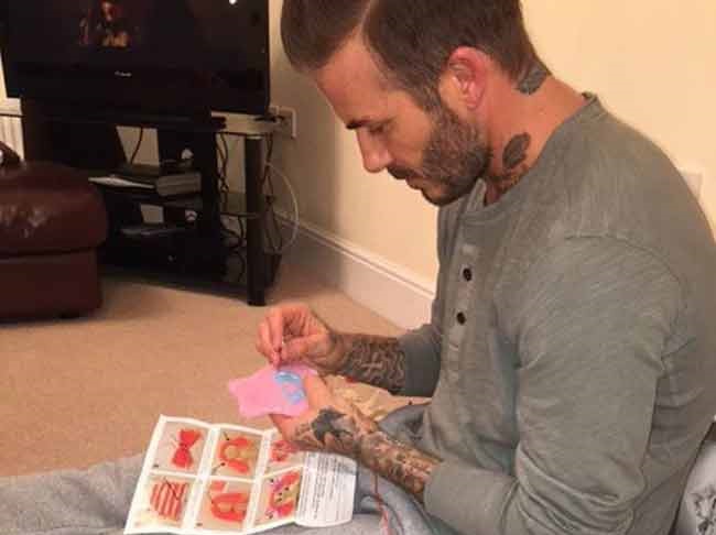 Victoria Beckham revelou o lado mais doméstico do marido. Numa foto partilhada no Instagram vê-se a antiga estrela de futebol com uma agulha na mão a coser as roupas para as bonecas da filha mais nova, Harper, de quatro anos.
