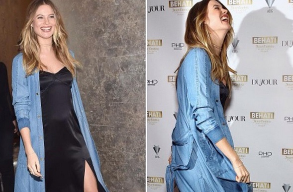 A mulher de Adam Levine escolheu um vestido preto, que evidenciava a sua proeminente barriga de grávida, conjugado com uma camisa de ganga e sandálias pretas. A modelo mostrou-se muito sorridente e bem-disposta, deixando transparecer a fase especial que está a viver.