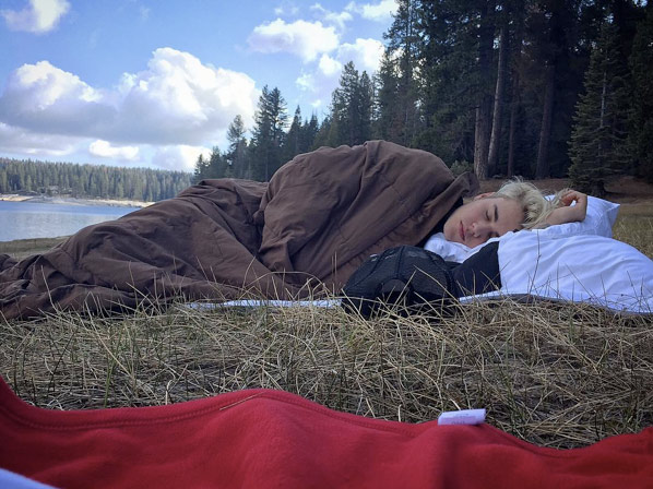 “A minha alma está a respirar. Encontro a minha vida enquanto descanso”, escreveu na legenda de uma foto, em que surge a dormir num saco-cama.