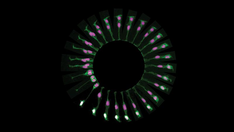 Paula Alexandre, que coordena um grupo de investigação no Institute of Child Health, da University College London, ganhou com uma imagem inédita, obtida com um microscópio confocal, da divisão celular no cérebro de um embrião de um peixe-zebra.
