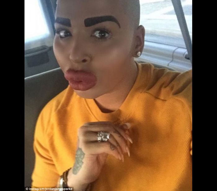 Além das intervenções médicas, Jordan James Parke também levou 50 injeções de enchimento de lábios, tatuou as sobrancelhas e preencheu a face com botox.