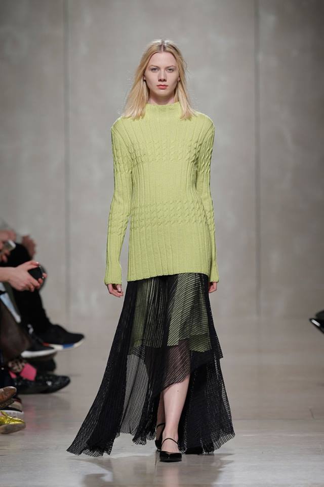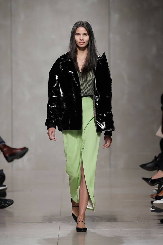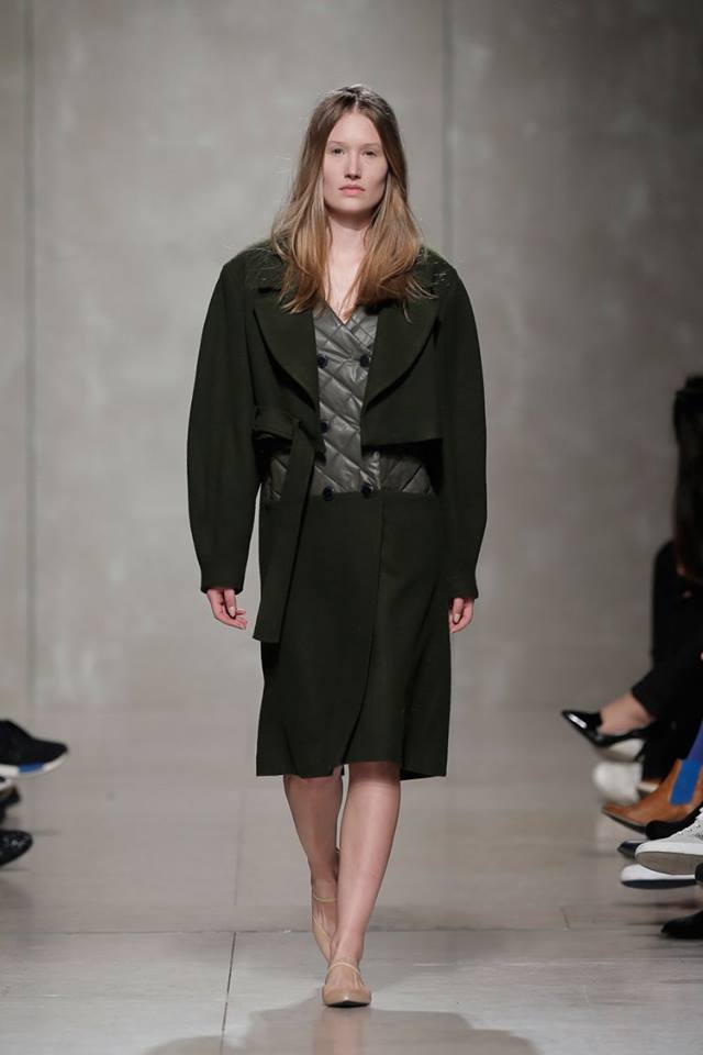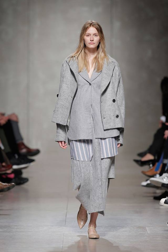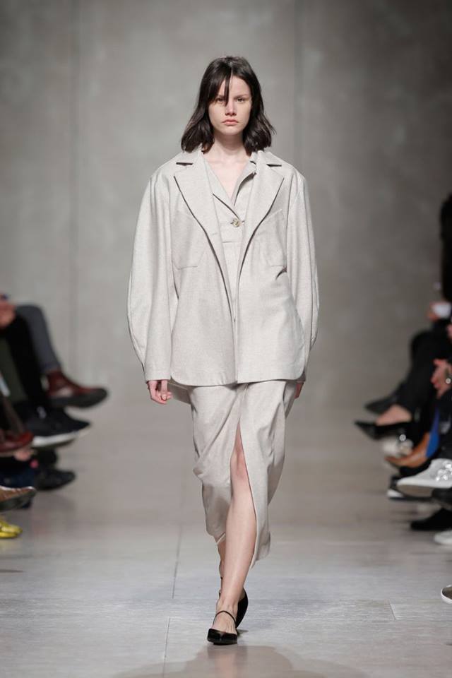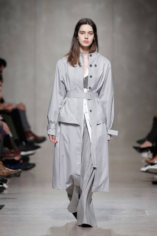 O estilista apostou em silhuetas agigantadas, volumetrias generosas, cortes assimétricos e sobreposições de peças, deixando transparecer uma forte influência do vestuário masculino/militar nos sobretudos e blusões. Além disso, as manequins desfilaram com malhas femininas de decotes generosos e calças largas de linhas sport.
