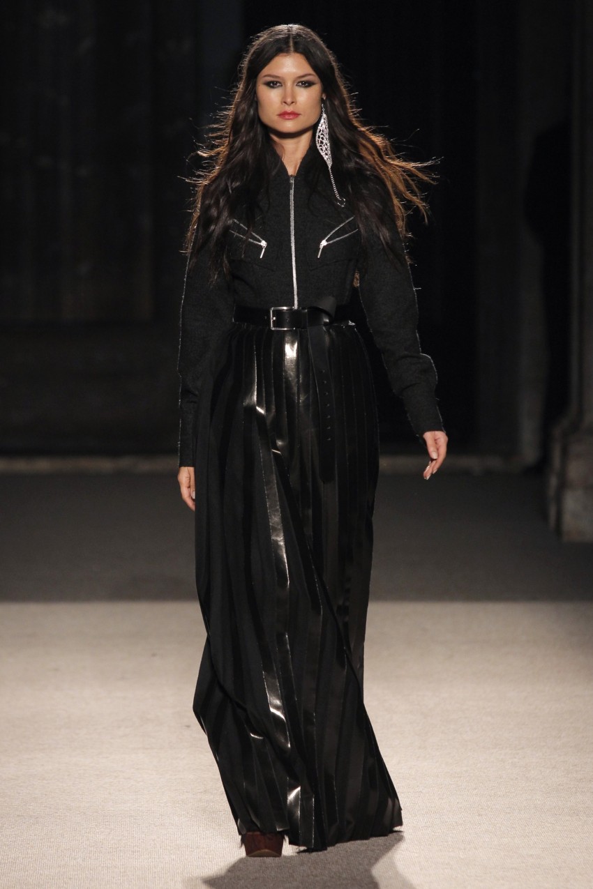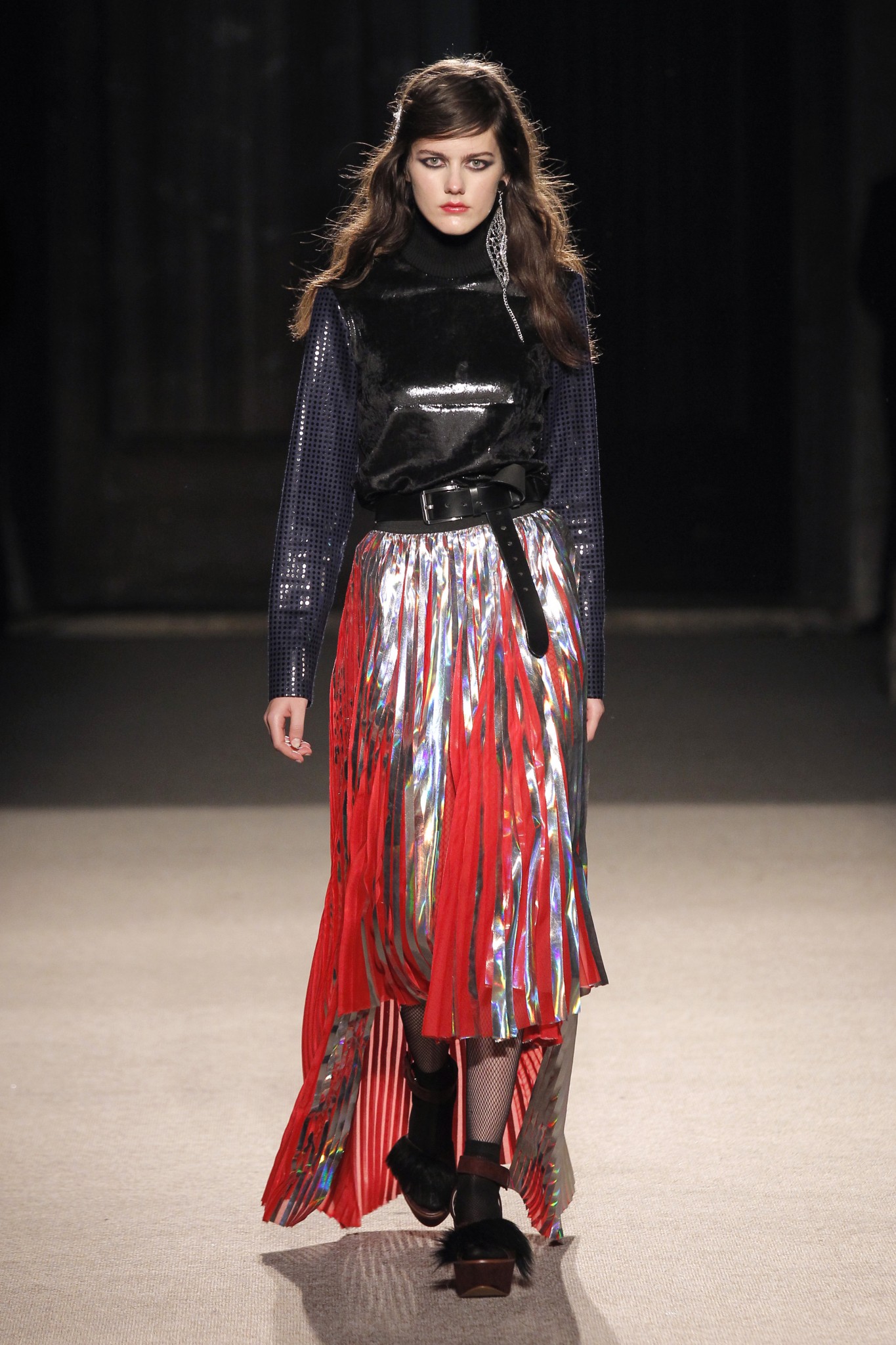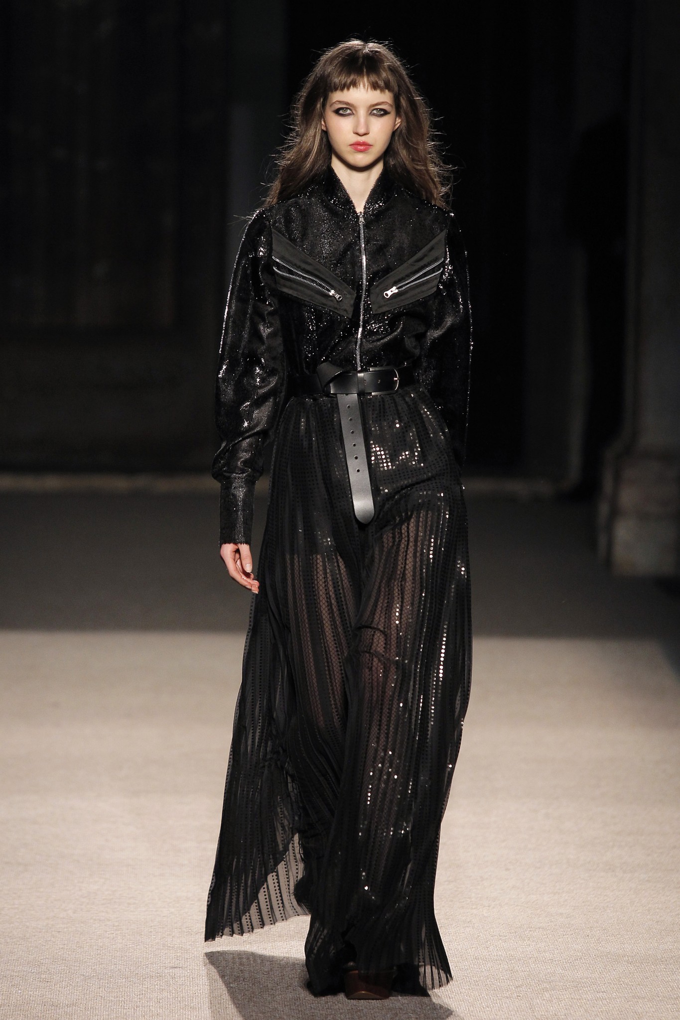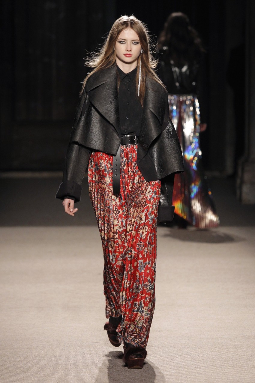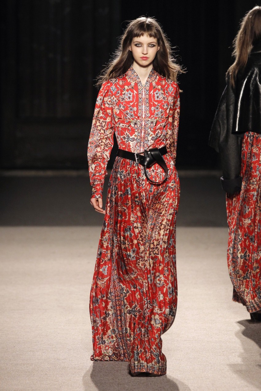 Houve também plissados e estampados de inspiração nos tapetes persas. Nas cores predominaram o preto, o cinza, o vermelho e o azul profundo. Veja as fotos: