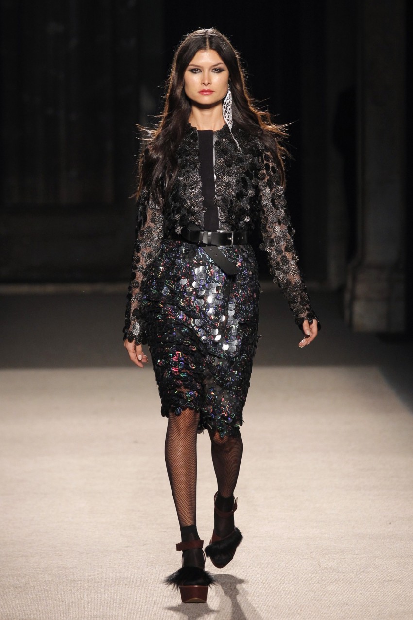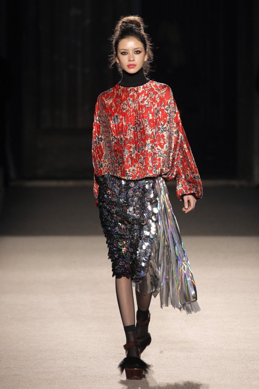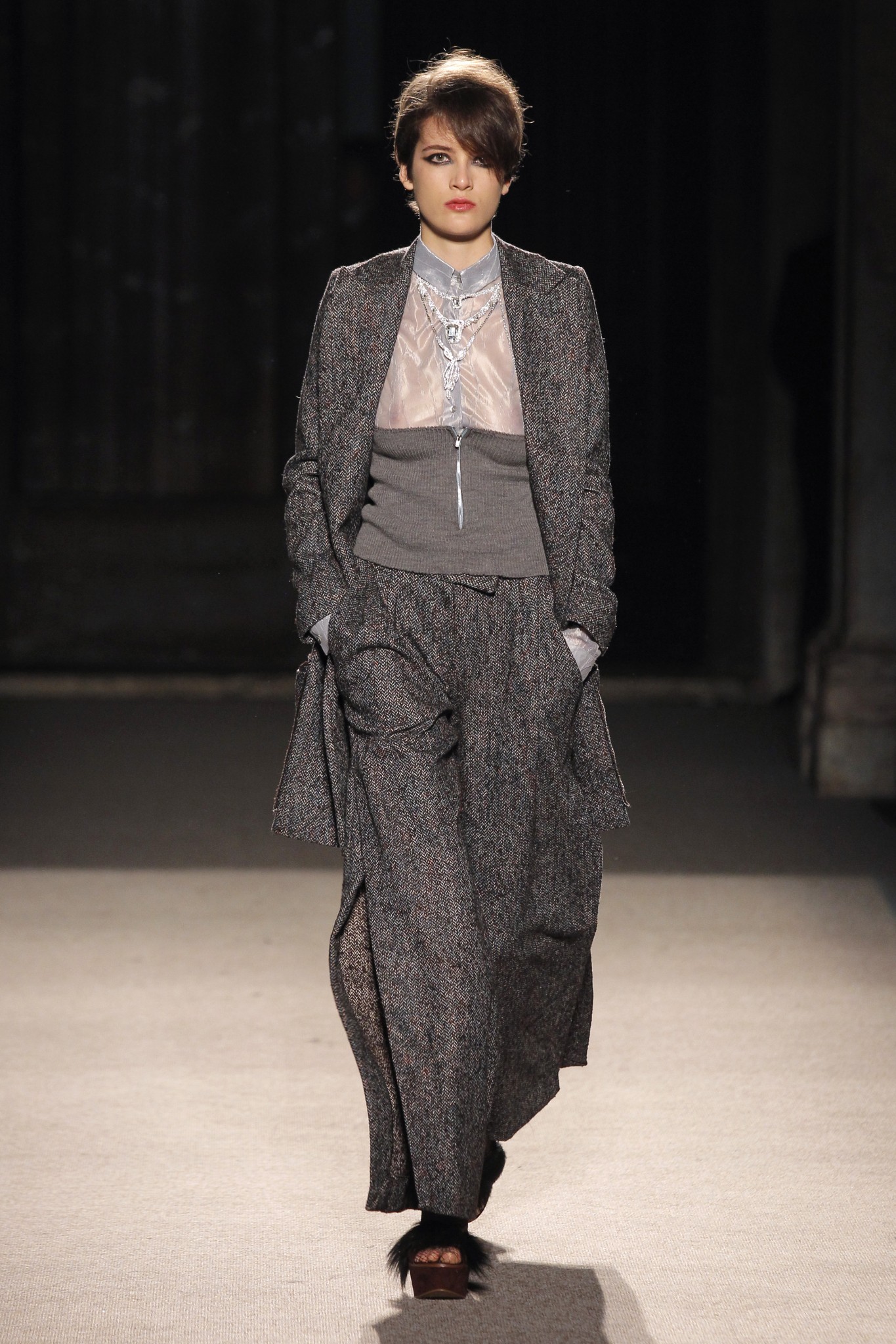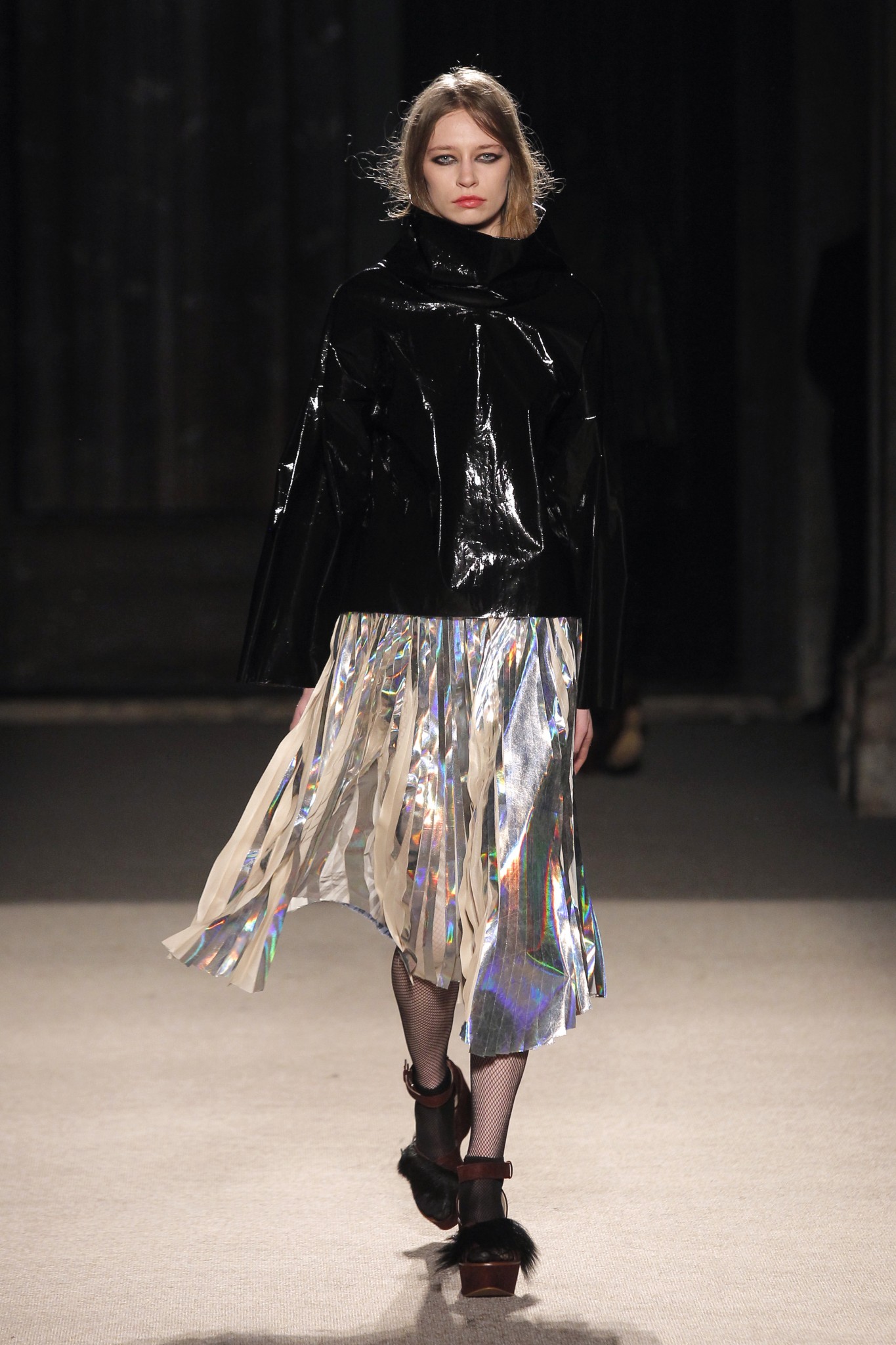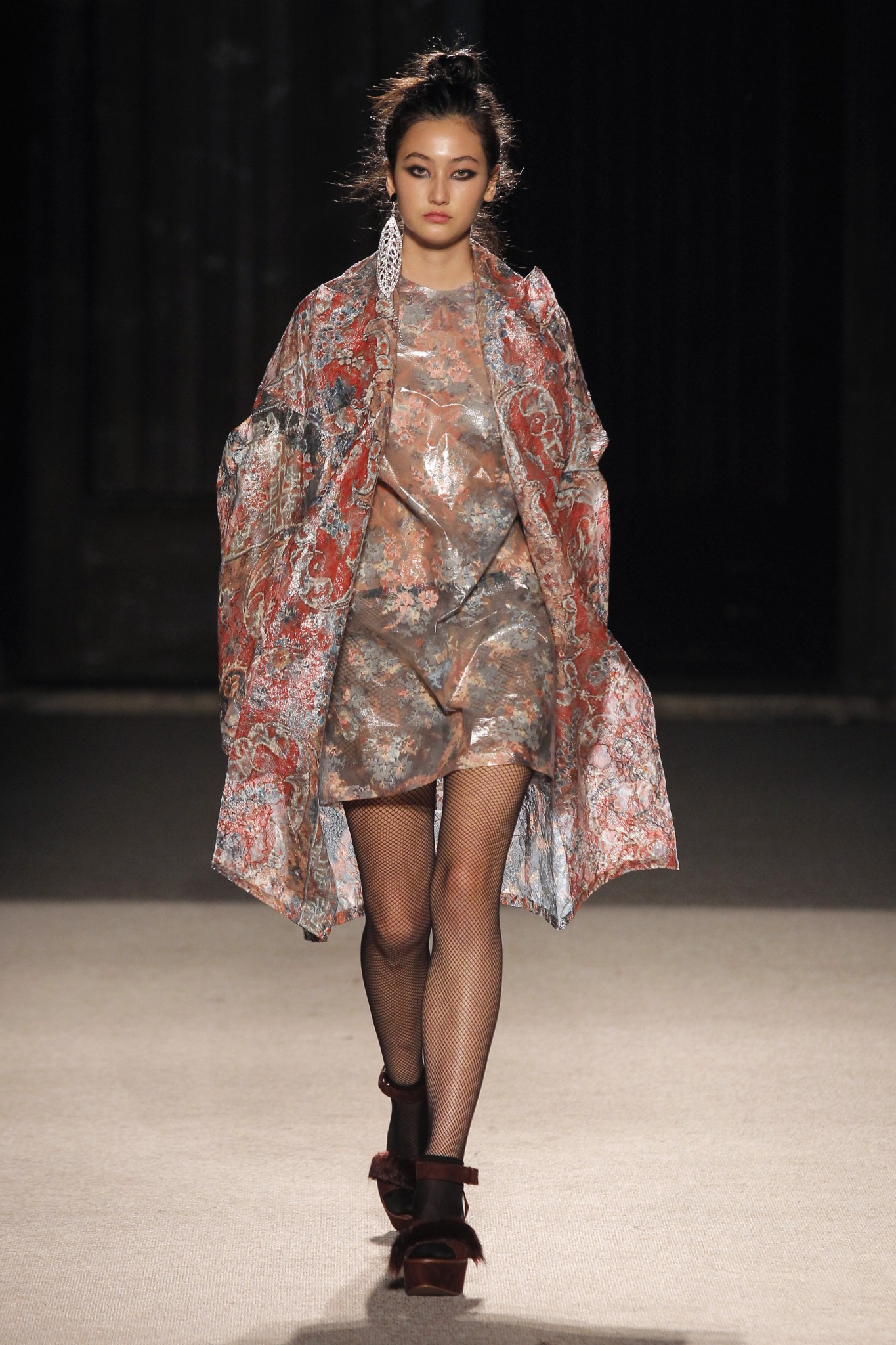 Houve também plissados e estampados de inspiração nos tapetes persas. Nas cores predominaram o preto, o cinza, o vermelho e o azul profundo. Veja as fotos: