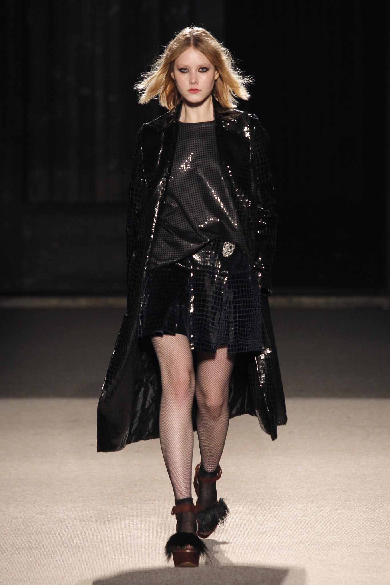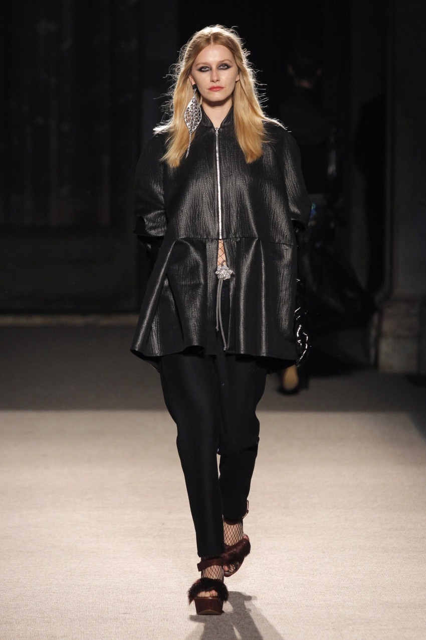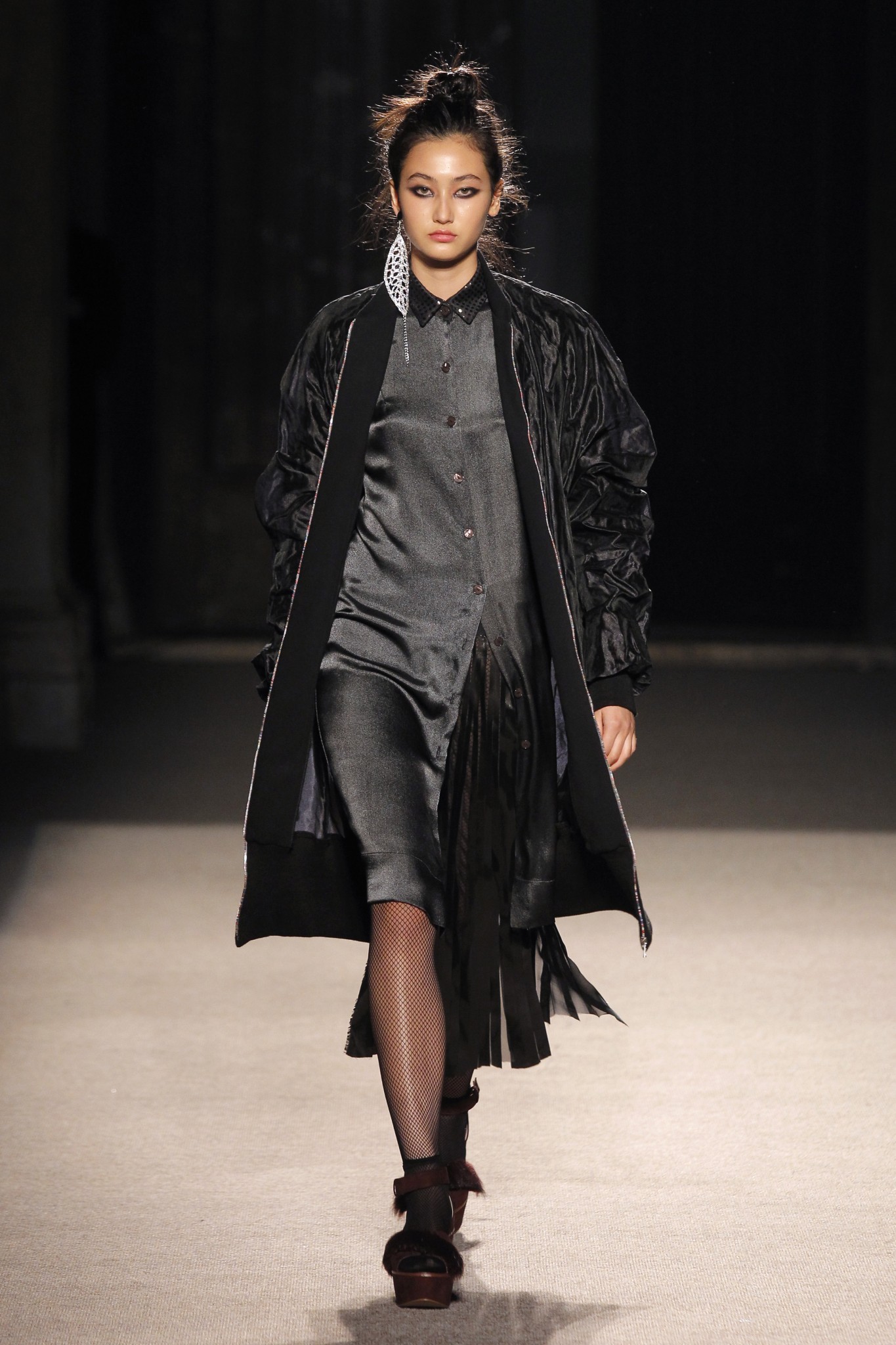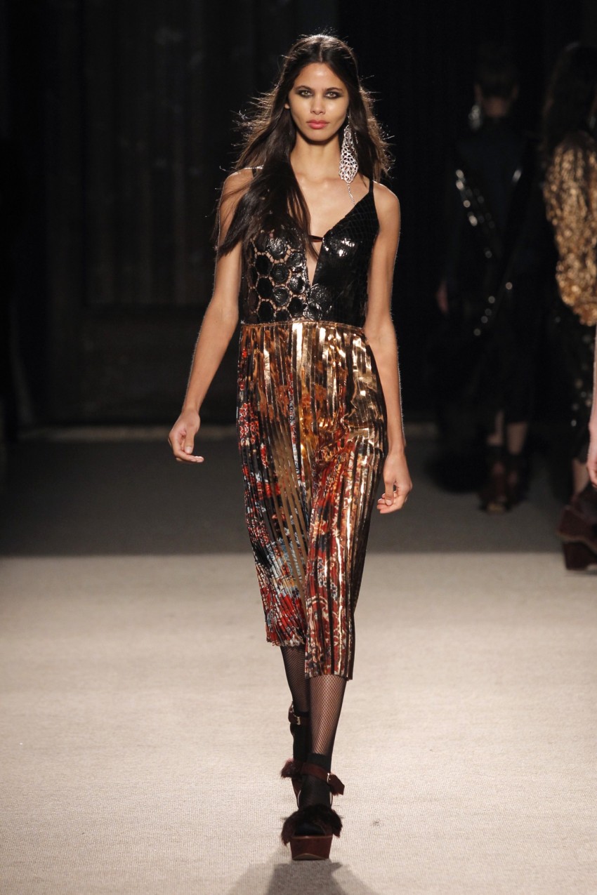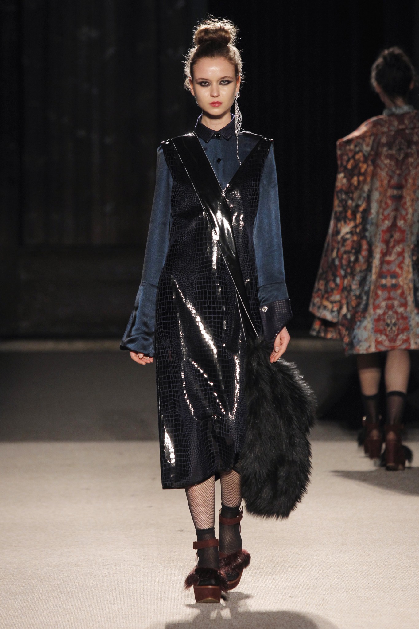 Houve também plissados e estampados de inspiração nos tapetes persas. Nas cores predominaram o preto, o cinza, o vermelho e o azul profundo. Veja as fotos: