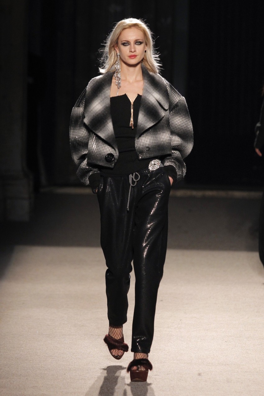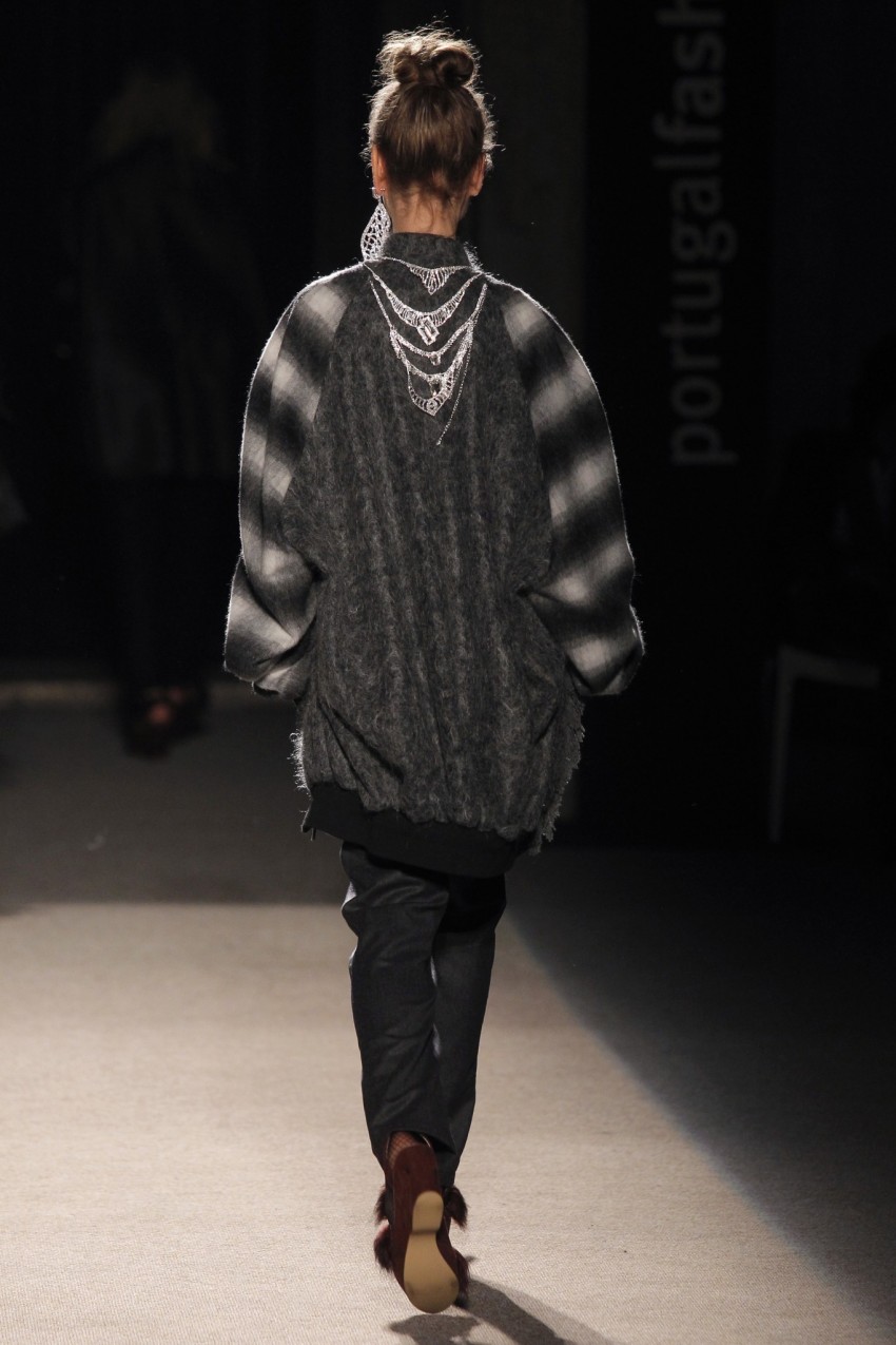 O primeiro dia da 38ª edição do Portugal Fashion, que arrancou ontem em Lisboa, terminou com o desfile de Alves/Gonçalves, que apresentaram uma coleção que, segundo os seus autores, “representa vários confrontos: oversize vs longilíneo, dialeto feminino vs masculino, simplicidade vs austeridade vs urbano, ordem vs desordem e baço vs brilho”.