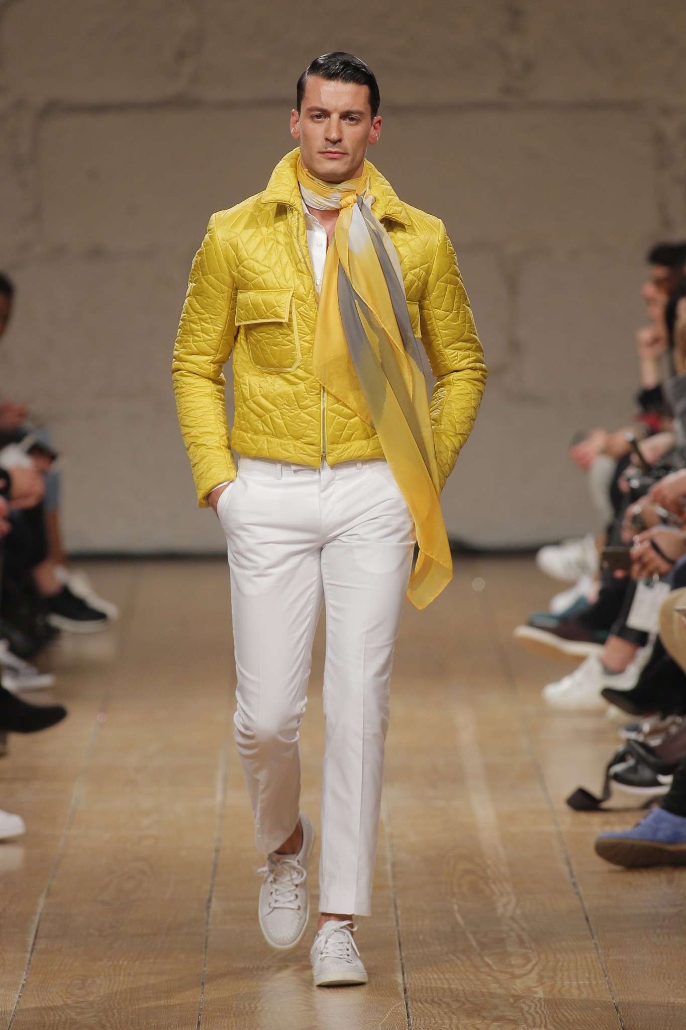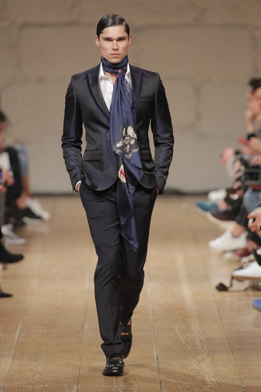 “O mistério, poder e elegância do preto caviar; a calma, lealdade, sabedoria e confiança do azul marinho escuro; a inocência, pureza e perfeição do branco; o otimismo, a alegria e a energia do amarelo mostarda. Cores com emoções próprias mas, quando combinadas entre si, criam um universo de novas emoções e sentimentos, criam uma harmonia visual entre linhas e cores, inocência e sedução, austeridade e elegância, fazendo com que funcionem como um todo”, descreveu o estilista.