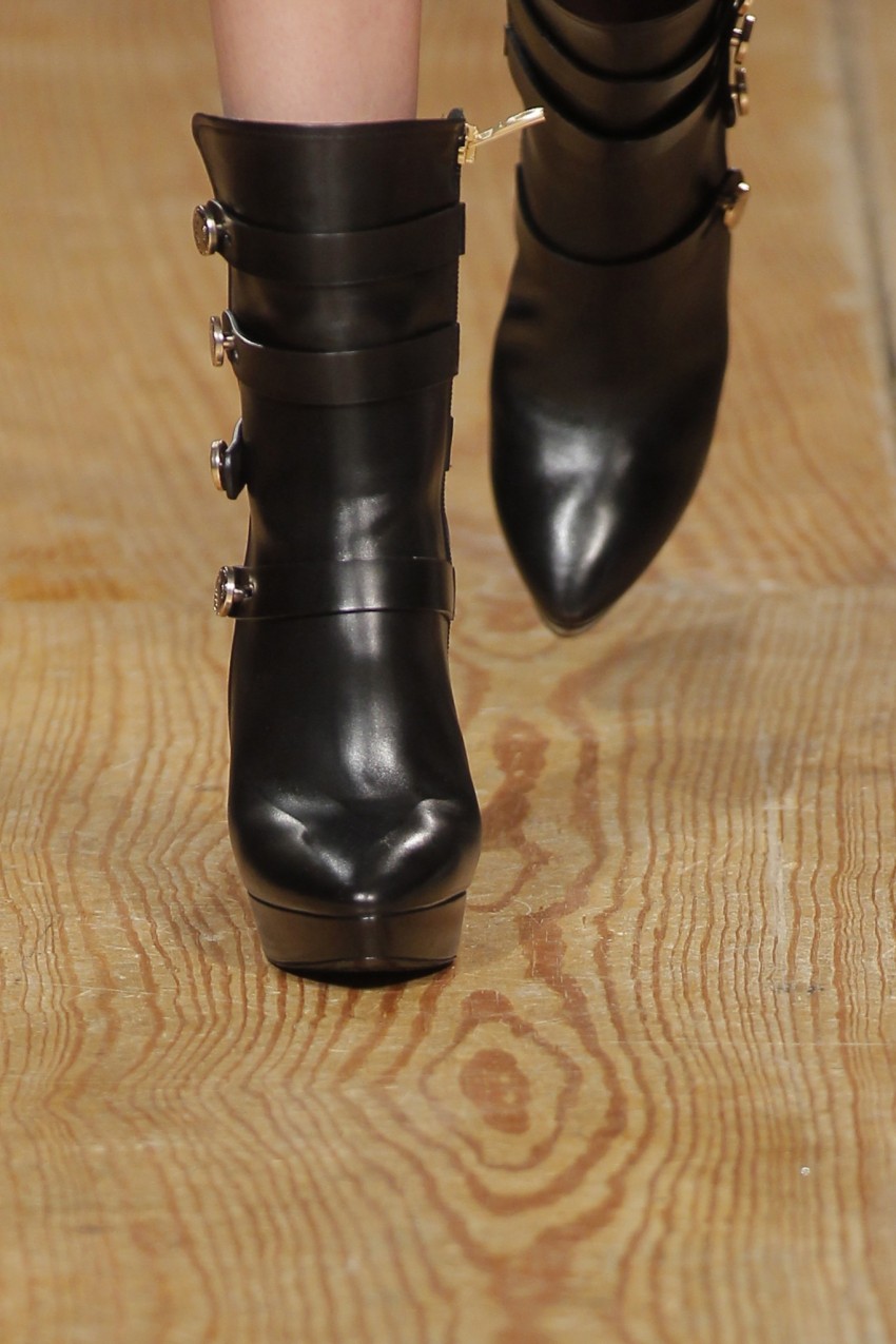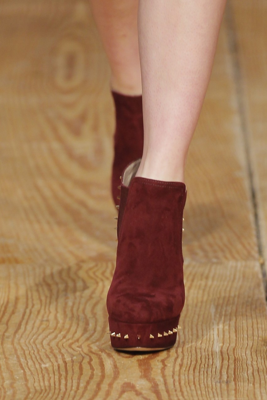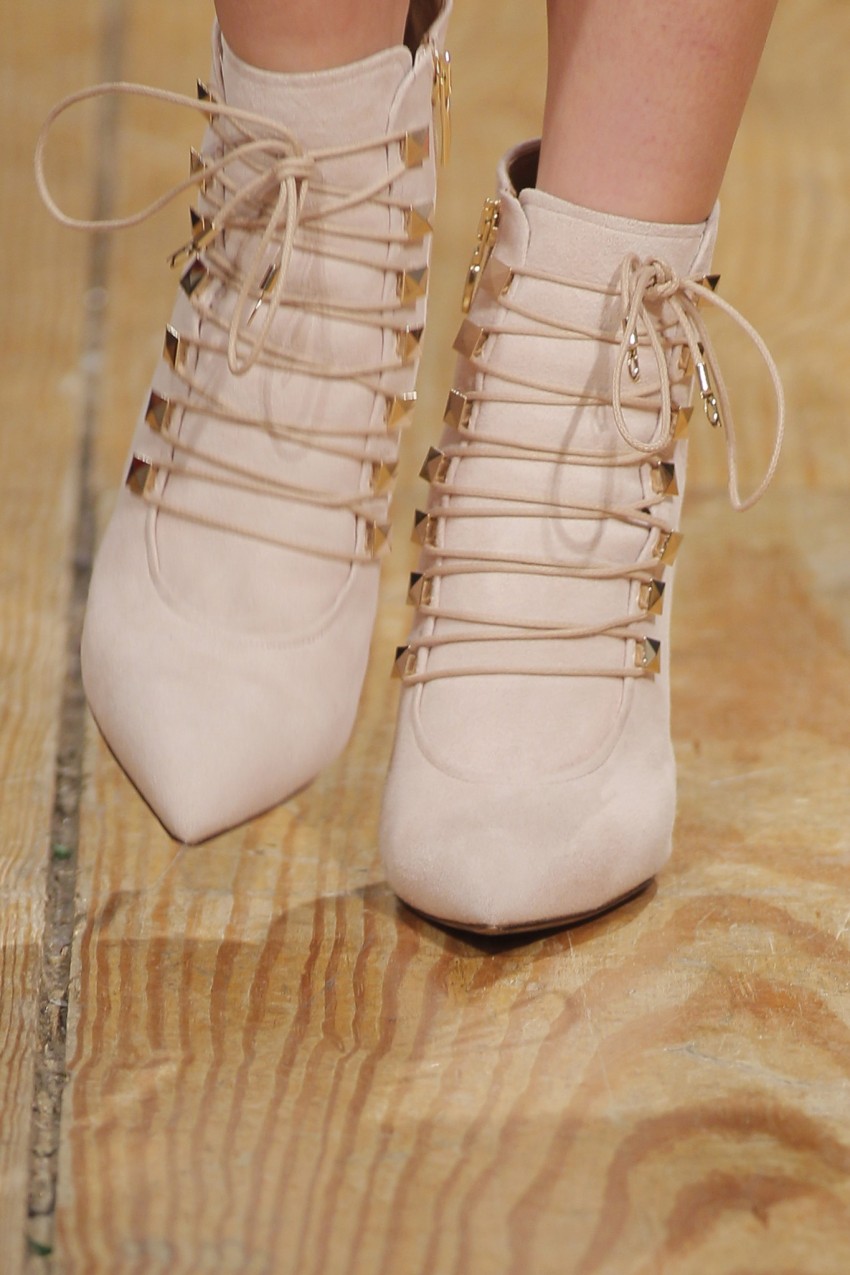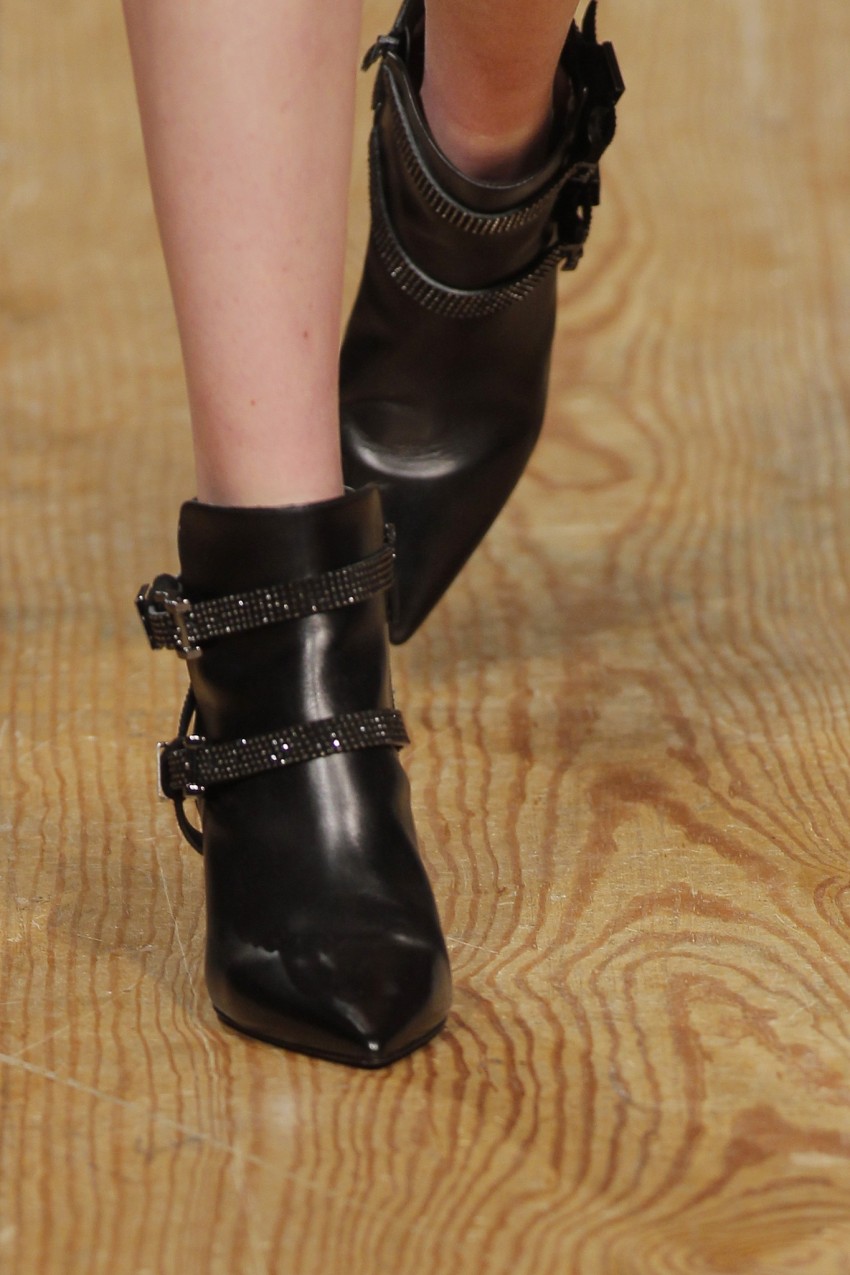 “Em busca do conforto casual que esperamos do inverno, os saltos perderam altura e alargaram em formato, mas ganharam elegância com a metalização e novas geometrias com o efeito facetado do diamante. A joalharia clássica portuguesa funde-se com a sapataria para homenagear o Coração de Viana, enquanto ornamento emocional e selo de uma tradição que transforma um sapato em joia”, descreveu Luís Onofre.