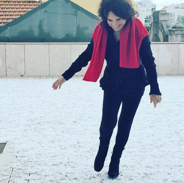 Regina Duarte até se divertiu ontem com o granizo que caiu na cidade, como mostrou nas redes sociais. “Caiu chuva de granizo há pouco em Lisboa”, escreveu na legenda.