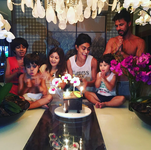 “Ontem… Parabéns para mim!!!!!!!!! Foi muito bom! Obrigada a todos por tantas mensagens de carinho!!!!!!!!! Todos os fãs, amigos, admiradores, seguidores…. Essas mensagens, posts amorosos, cartinhas.. Fizeram-me sentir muito querida e agraciada”, escreveu a estrela da Globo na legenda da foto, na qual surge rodeada pelo marido, Carlos Eduardo Baptista, e pelos filhos, Pedro e António, enquanto todos cantam os parabéns.