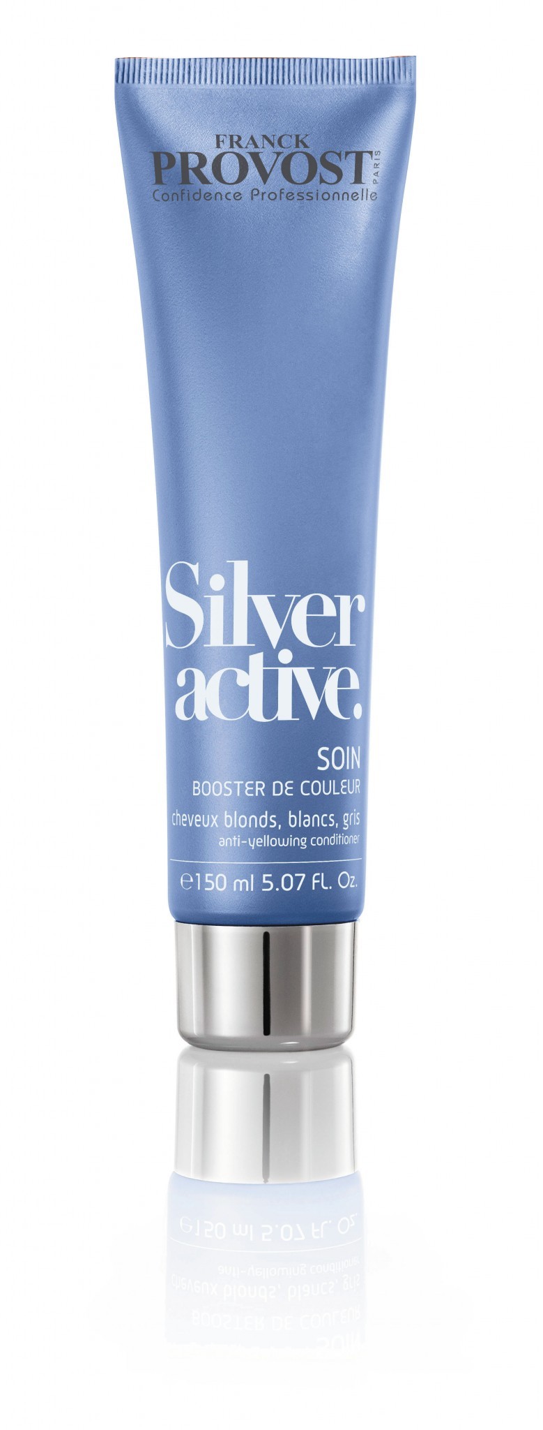 Enriquecido com pigmentos, o soin booster de couleur Silver Active revela a cor, neutraliza os reflexos indesejados e nutre a fibra para uma cor sublime.