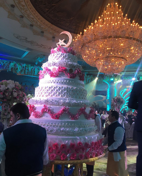 O evento teve lugar no passado sábado, em Moscovo, no faustoso restaurante Safisa. As paredes foram preenchidas com rosas de todas as cores, houve um bolo sumptuoso de vários andares e os 600 convidados foram recebidos pessoalmente pelos empregados vestidos a rigor que os acompanhavam à mesa. Também a noiva, claro, chamou à atenção com o luxuoso vestido Elie Saab, com pedras preciosas e uma longa cauda.