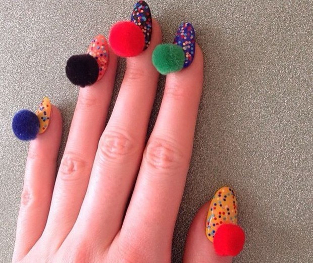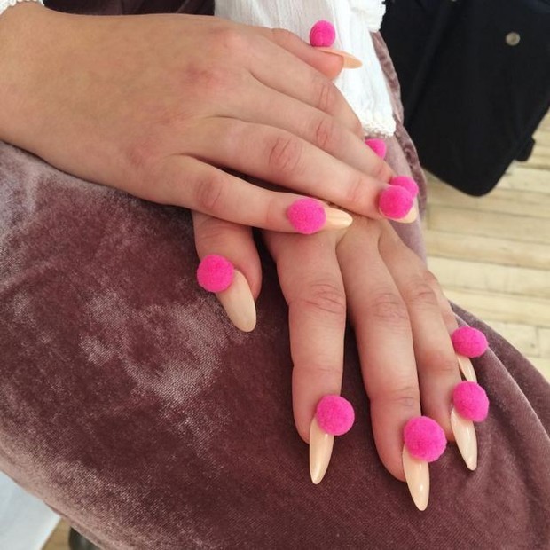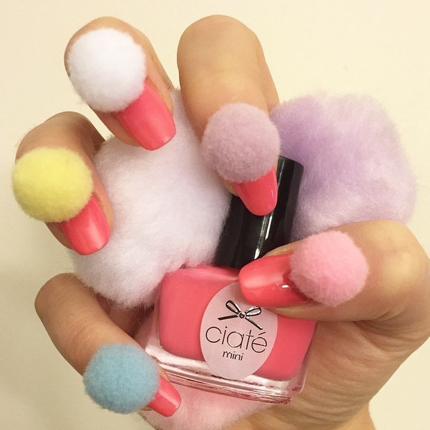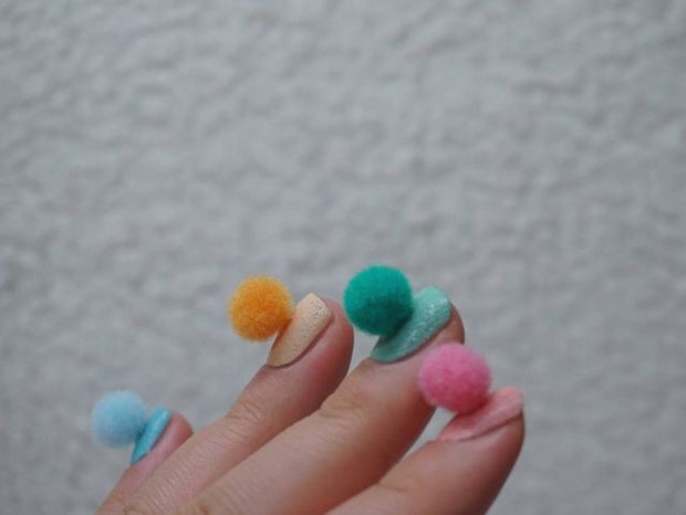 Os pompons chegaram para tomar de assalto o mundo da moda. Depois de roupas e acessórios, também se tornaram tendência nas unhas.