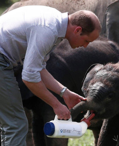 Ao estilo safari, William e a sua mulher visitaram o parque e tiveram oportunidade de alimentar as crias de elefante que ali nasceram há poucos dias.