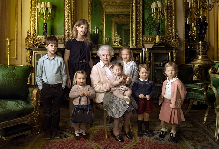 Na foto – captada no castelo de Windsor pela fotógrafa Anne Leibovitz – Isabel II surge visivelmente feliz,com os seus descendentes, os netos James e Louise e os bisnetos Mia, Savannah, Isla, George e Charlotte.