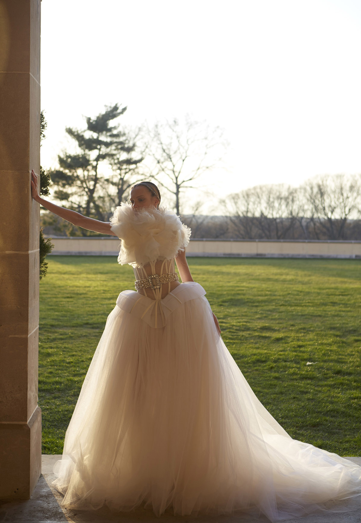 O destaque especial foi para os vestidos de noivas arrematados pelo espartilho, uma tendência que despontou nas passarelas de prêt-a-porter das marcas como Prada e Balmain.