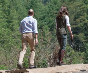 Durante cerca de seis horas, a duquesa de Cambridge caminhou – de mãos dadas – ao lado do marido, o príncipe William de Inglaterra. Sorridente, à chegada Kate ainda brincou com facto do exercício ter sido “uma excelente forma de queimar as calorias do caril” da véspera, referindo-se ao jantar privado com o rei do Butão e a sua mulher, Jetsun Pena. “É fantástico, lindo. Um sítio muito especial”, afirmaram os duques no final do passeio.