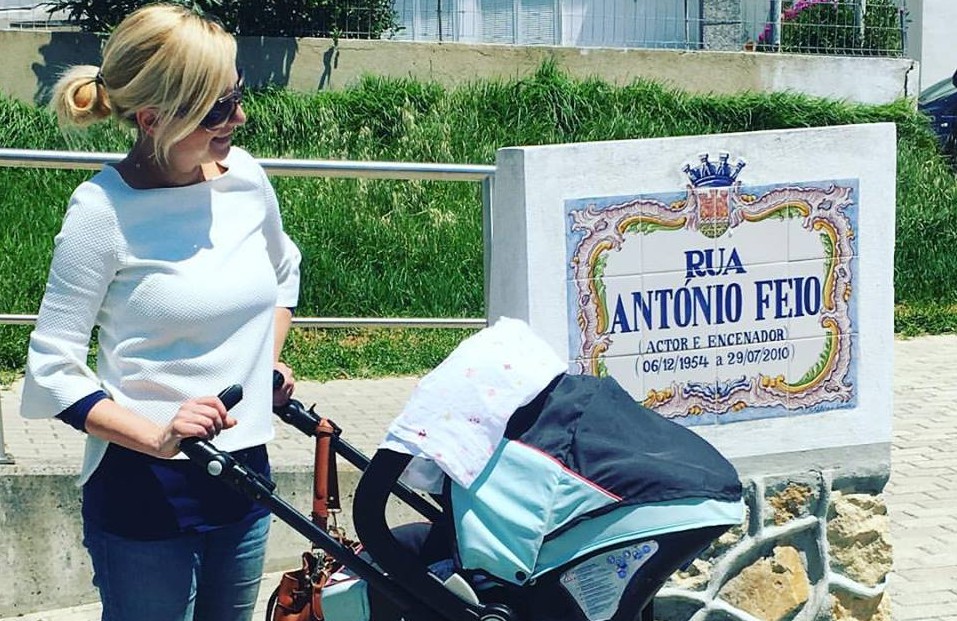 Aproveitando o sol que já brilha, Bárbara passeou com a menina pela rua “António Feio”, situada na Junqueira, em Carcavelos, e fez questão de registar o momento.