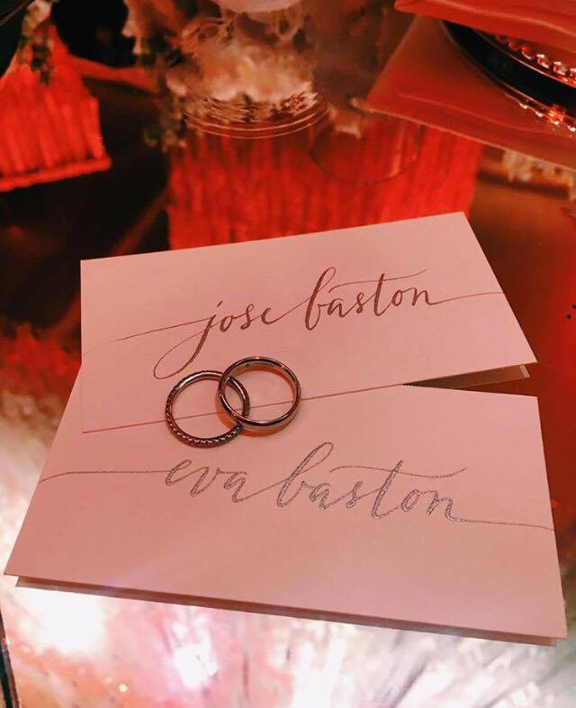 Um dia depois do enlace, a atriz resolveu partilhar com os seguidores nas redes sociais um momento de felicidade, com uma fotografia das alianças. “No nosso jardim, rodeados com um pequeno grupo de pessoas que amamos, o Pepe e eu casámos”, escreveu na legenda. Nessa mesma fotografia é ainda possível ver o nome do casal: José Bastón e Eva Bastón.