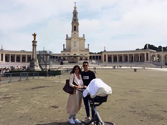 “Não podíamos ter começado as férias sem ir mostrar o Reino Encantado ao pequeno Afonso! Foi a primeira de muitas visitas à terra dos papás”, escreveu a noiva do jogador do Benfica na legenda da fotografia onde surgem com o bebé no carrinho e o castelo brigantino como cenário.
