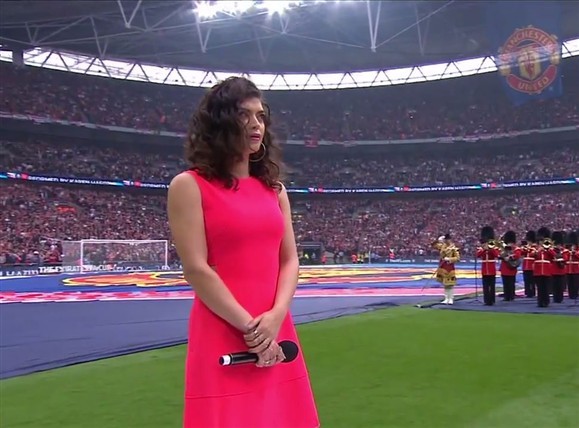 Karen Harding, convidada para cantar o hino nacional britânico perante o estádio de Wembley completamente cheio, acabou por ficar praticamente o tempo todo calada.