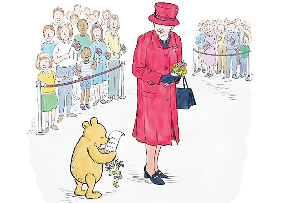 Na obra “Winnie-the-Pooh and the Royal Birthday” (Ursinho Pooh e o Aniversário Real, em tradução livre), o famoso urso e os seus amigos – Leitão, Bisonho e Christopher Robin – recebem uma carta com urgência, a informar do aniversário da rainha britânica.