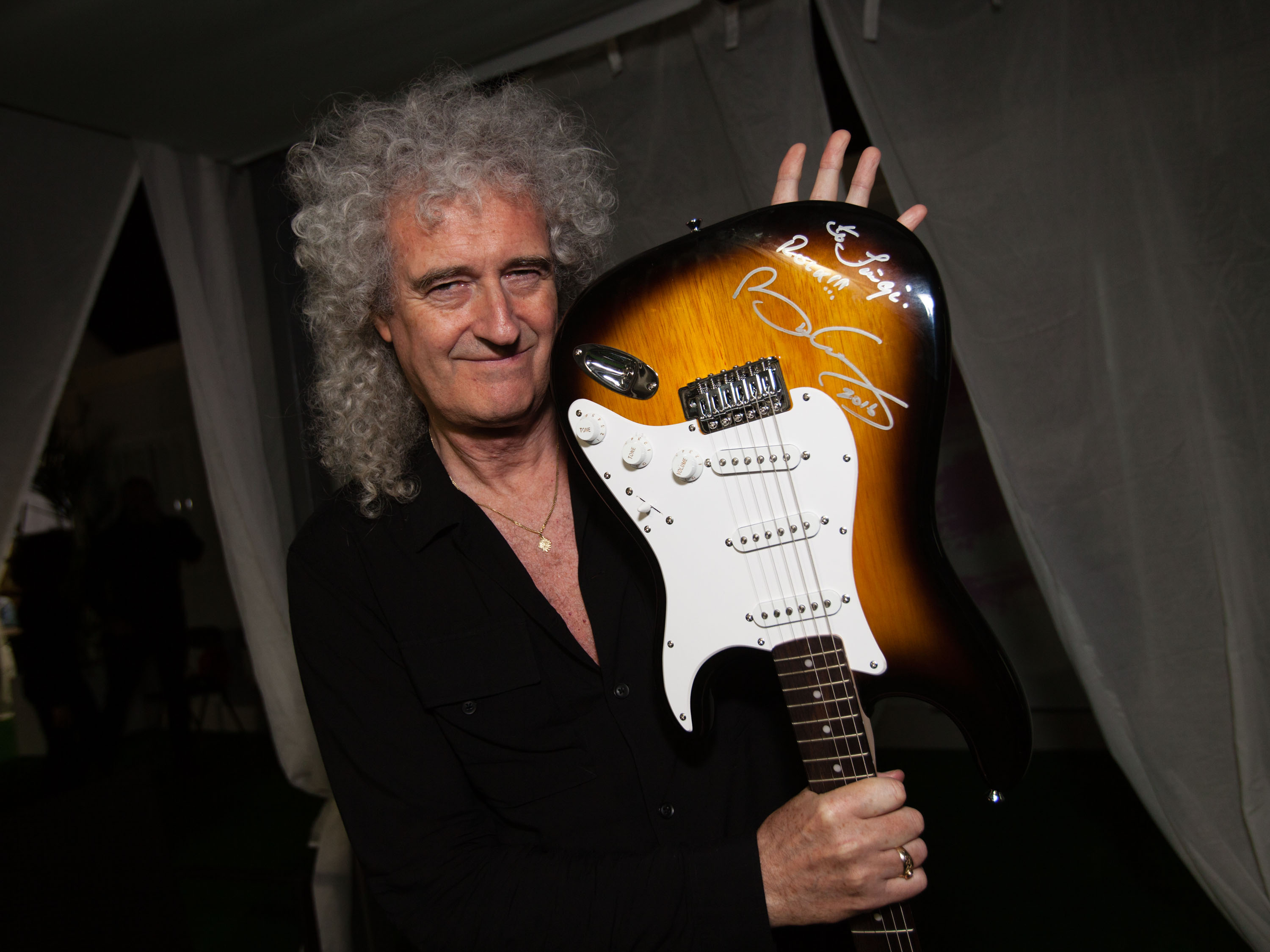 No âmbito do projeto Amazonia Live, os Queen+Adam Lambert – que se estrearam ontem no Rock in Rio-Lisboa sem defraudar expectativas – assinaram e entregaram a guitarra leiloada na presença da fã que fez a maior licitação.